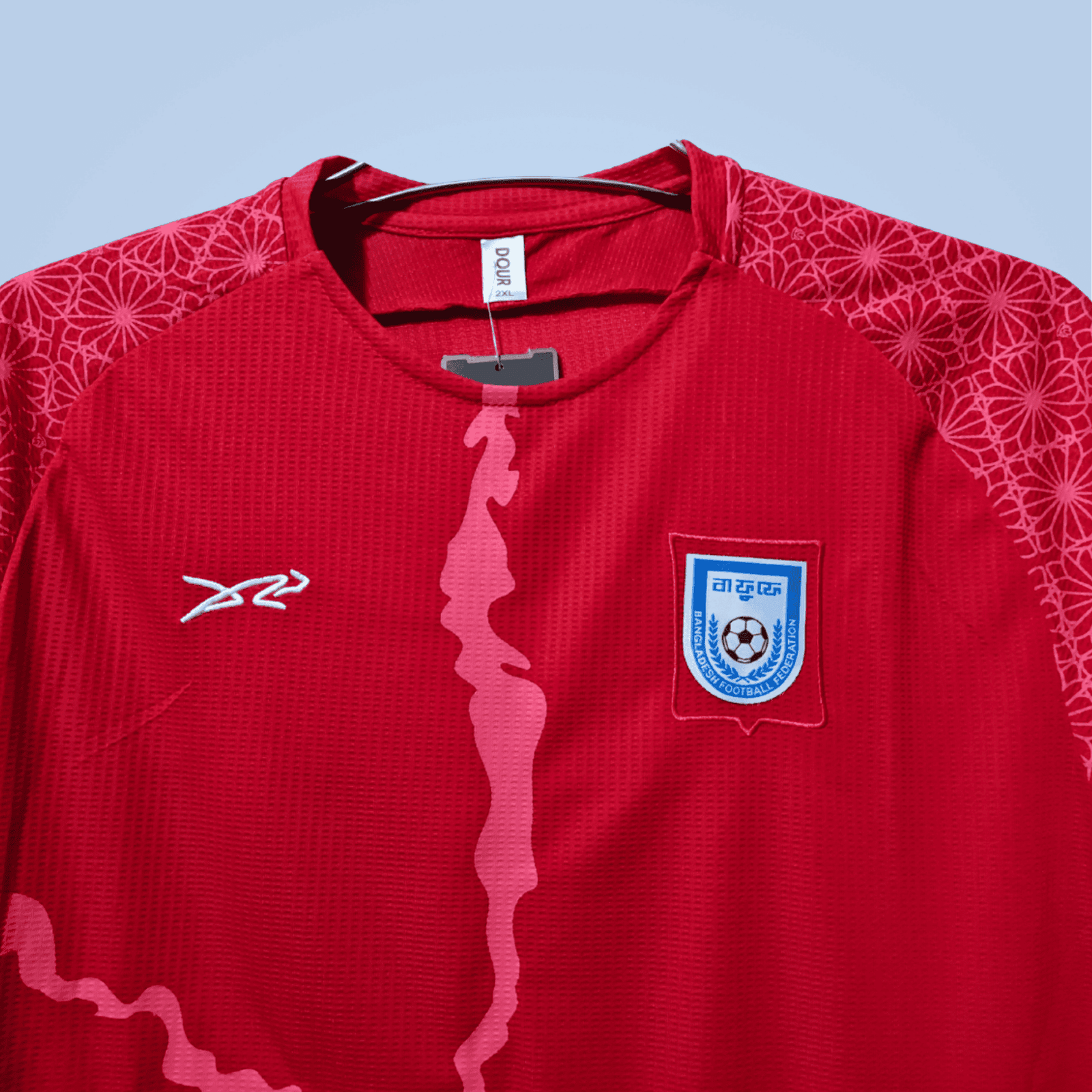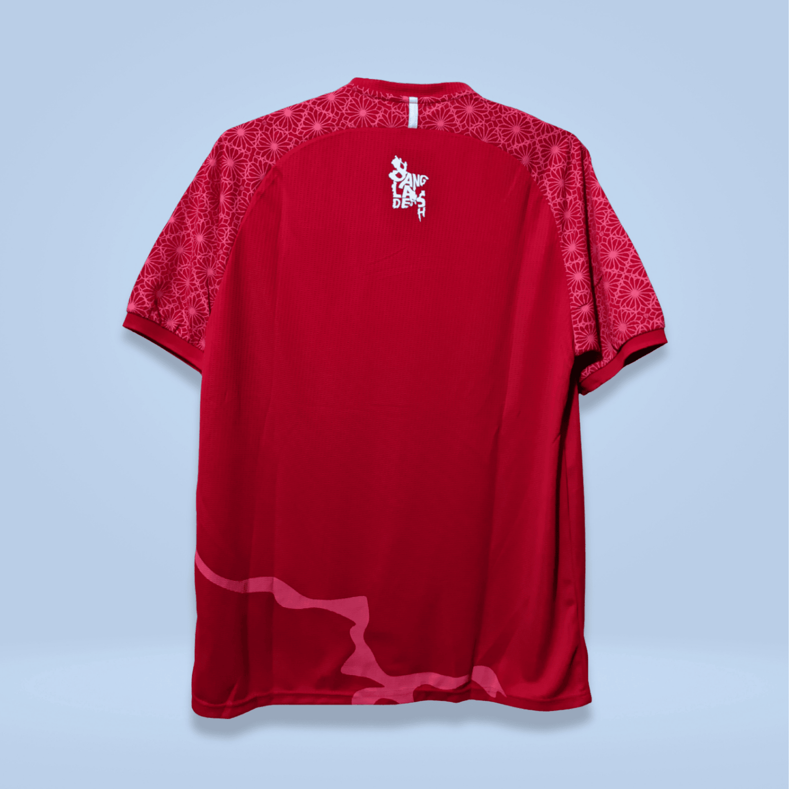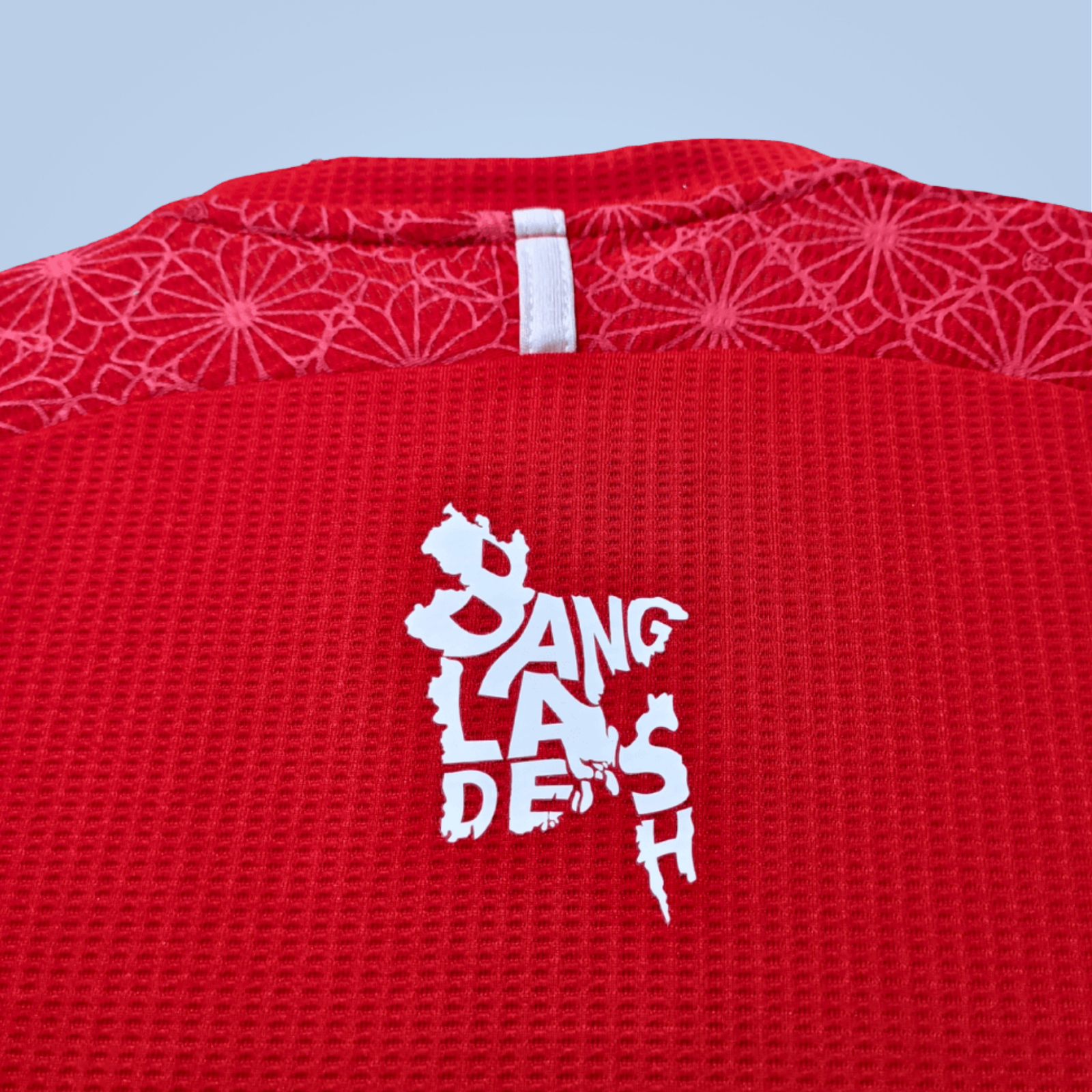 Inspired by the rivers that unite us. Water lily motifs on the sleeves—honoring our national flower, a symbol of purity and resilience. Designed for warriors who never stop moving. A tribute to strength, passion, and pride. Every pass, every sprint, every goal—we carry the pulse of our rivers, the heartbeat of our people, and the blooming hope of our nation.