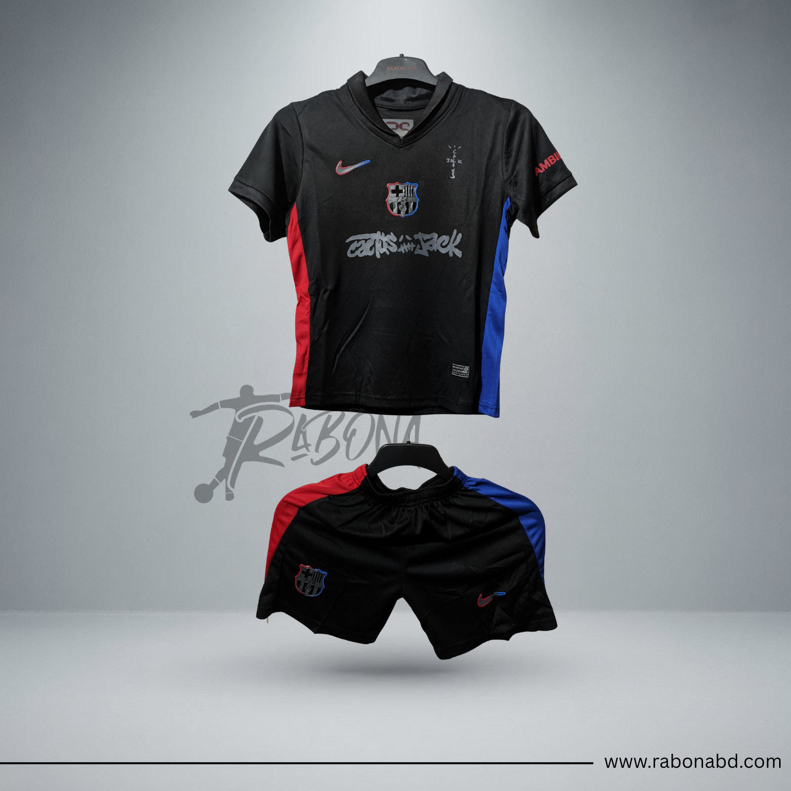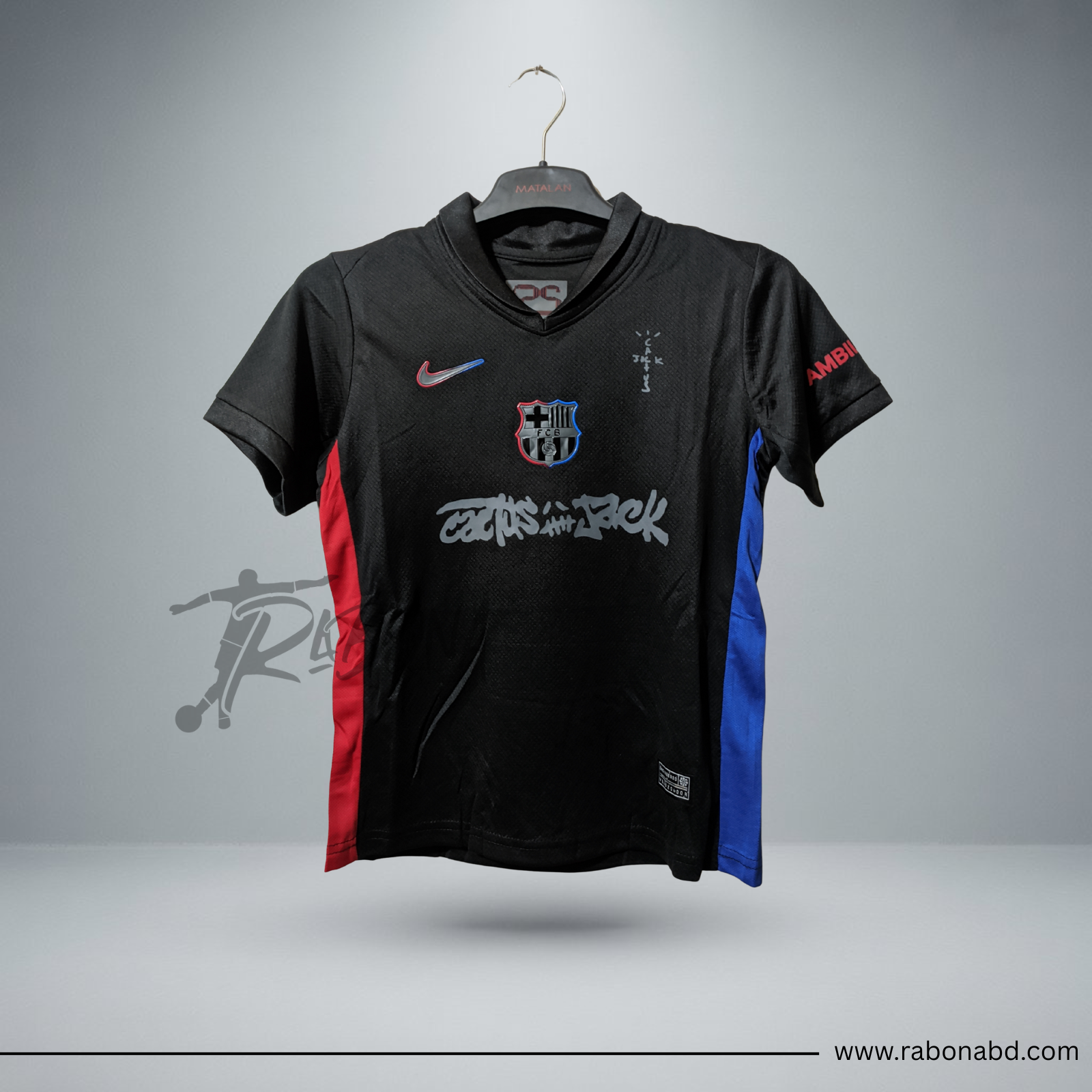 Fuel your little fan’s passion for Barça with the exclusive Barcelona Away Kids 24/25 Cactus Jack Edition jersey. Designed in collaboration with Travis Scott’s Cactus Jack brand, this kit blends bold streetwear vibes with the pride of Blaugrana football. Made with lightweight, breathable fabric, it ensures all-day comfort whether they’re cheering from the stands, playing on the pitch, or rocking it casually. Featuring the iconic Barça crest and a unique Cactus Jack-inspired design, it’s the perfect way for kids to show their love for the club in standout style.