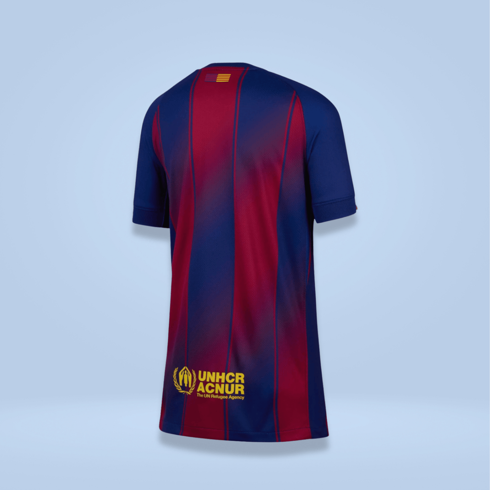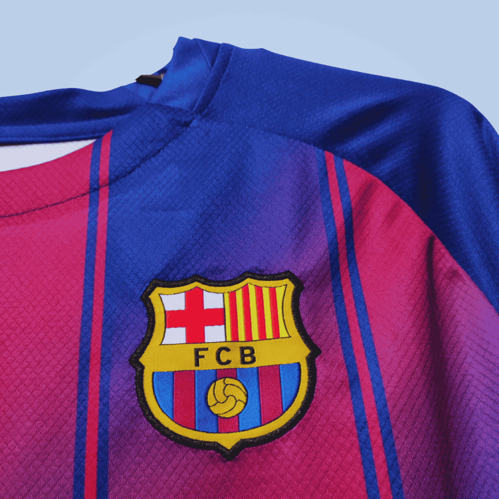 Designed with the iconic blaugrana stripes, this jersey features a gradient effect in blue and red tones that gives it a modern and dynamic style. The FC Barcelona crest is placed on the chest, on the left side, while the Nike logo appears on the right side.