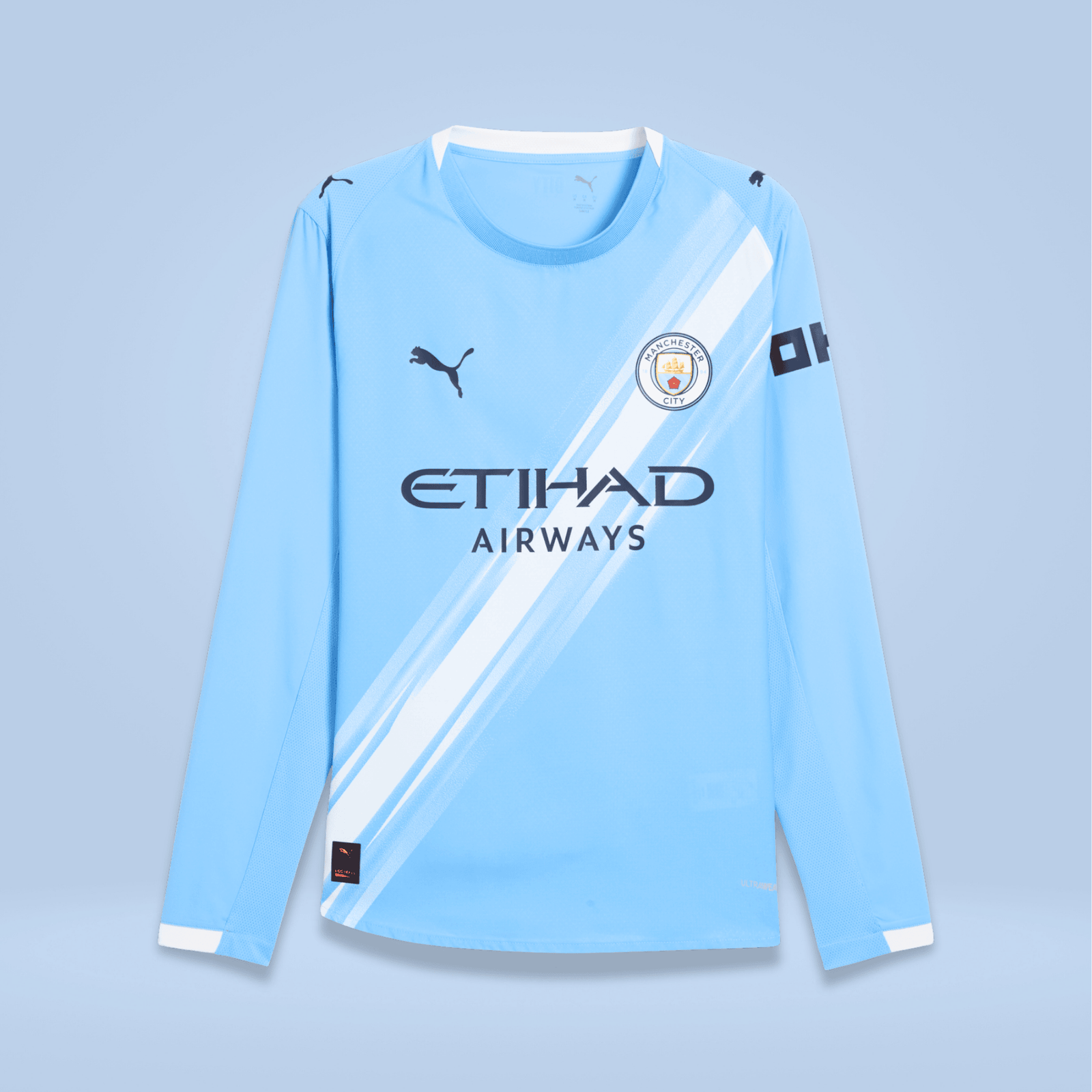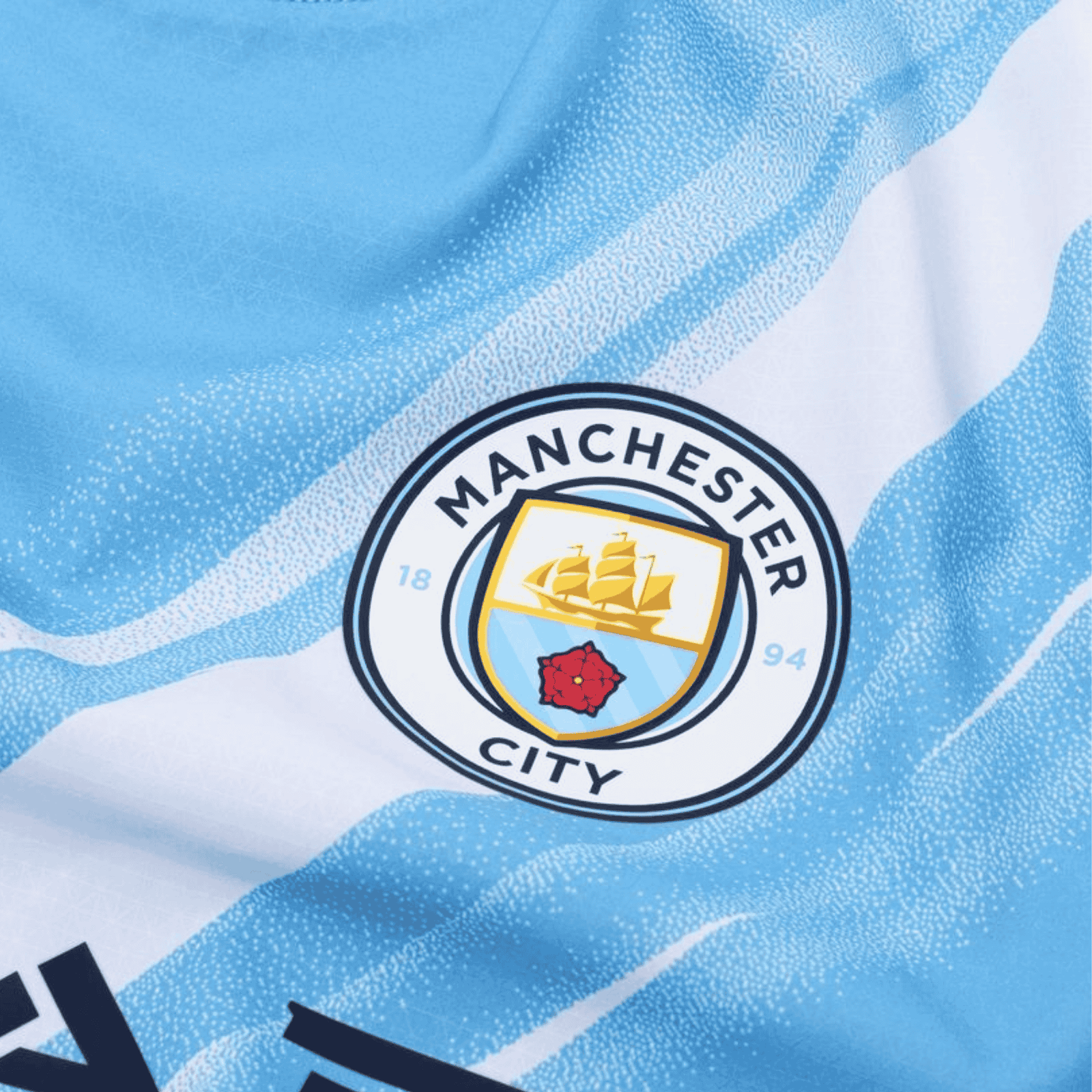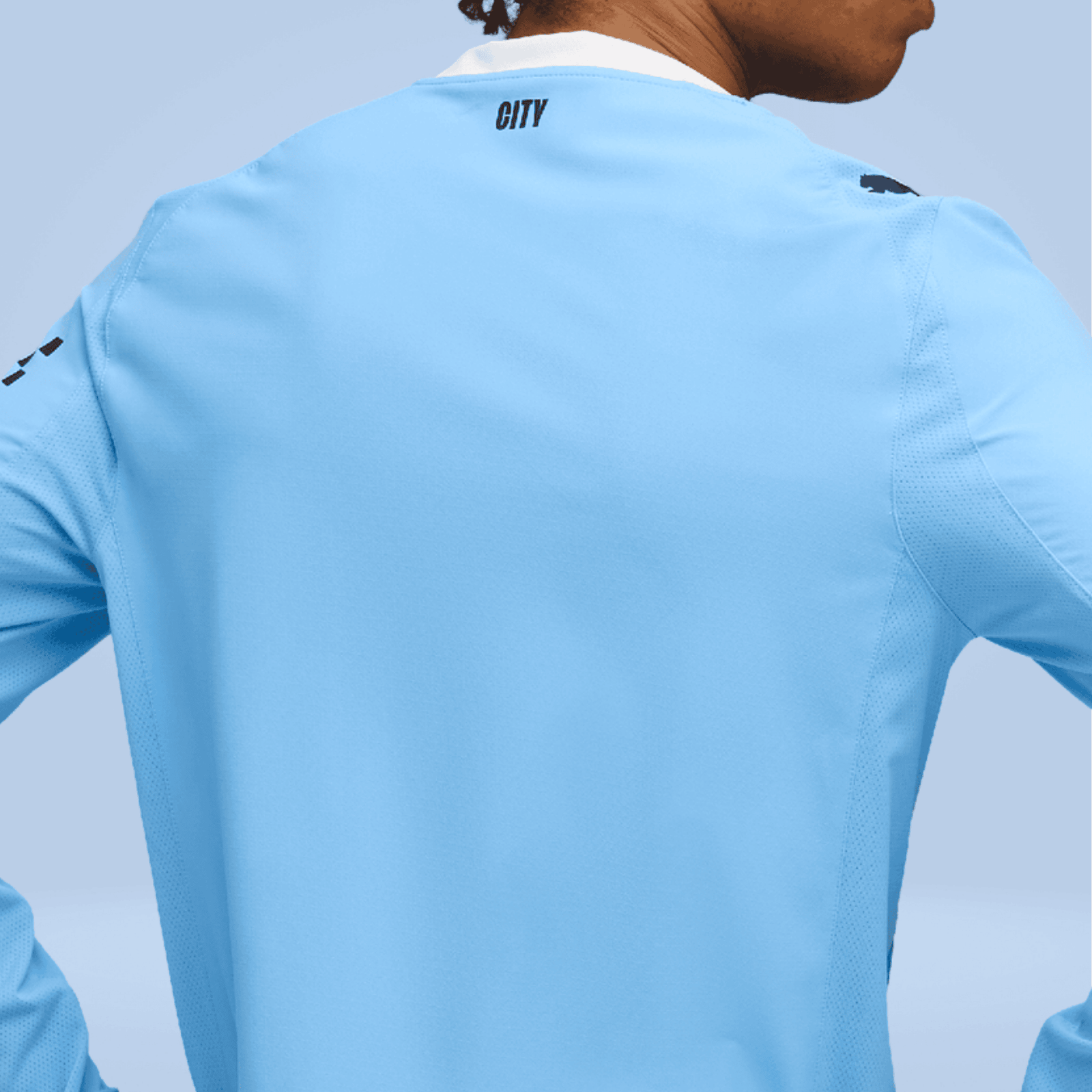 The Manchester City Authentic Home Jersey 2025/26 is designed for true fans who want to feel part of the team. Crafted from PUMA’s lightweight ULTRAWEAVE fabric, it offers superior comfort and reduced friction for elite-level performance. The dryCELL technology keeps you dry by wicking away sweat, while strategically placed mesh panels on the shoulders, sides, and underarms ensure optimal ventilation. For the first time in club history, the home kit features the iconic sash, once reserved for away kits, now reimagined in classic Sky Blue. It’s a strong connection to our past and a bold statement for the future, representing the spirit of City: doing things our way, on and off the pitch. This stunning piece showcases the signature Manchester City crest, PUMA Cat logo, and a “CITY” printed at the back neck for a premium, authentic touch. With short sleeves and a slim fit, this jersey combines style, performance, and pride in one seamless design. Comes in a gift box, beautifully wrapped in tissue paper.