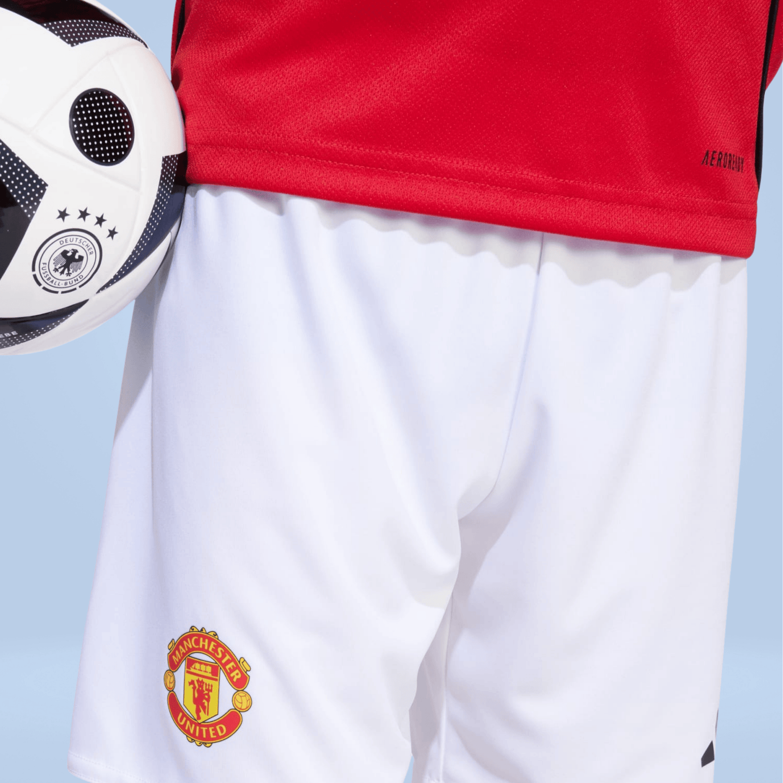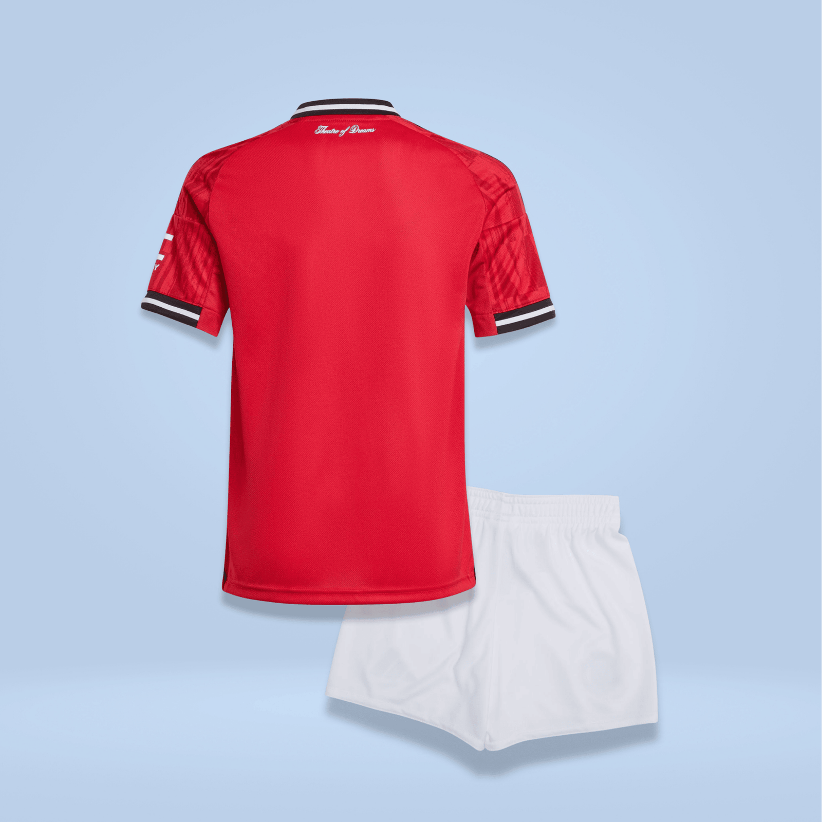 Bring the magic of Old Trafford home with this kids’ Manchester United kit. A sized-down version of the club’s timeless adidas home strip, it includes a jersey with a “Theatre of Dreams” back neck sign-off, and a pair of comfortable shorts. Moisture-managing AEROREADY helps keep young fans dry whether they’re kicking it on the soccer pitch or kicking back in front of the big game.