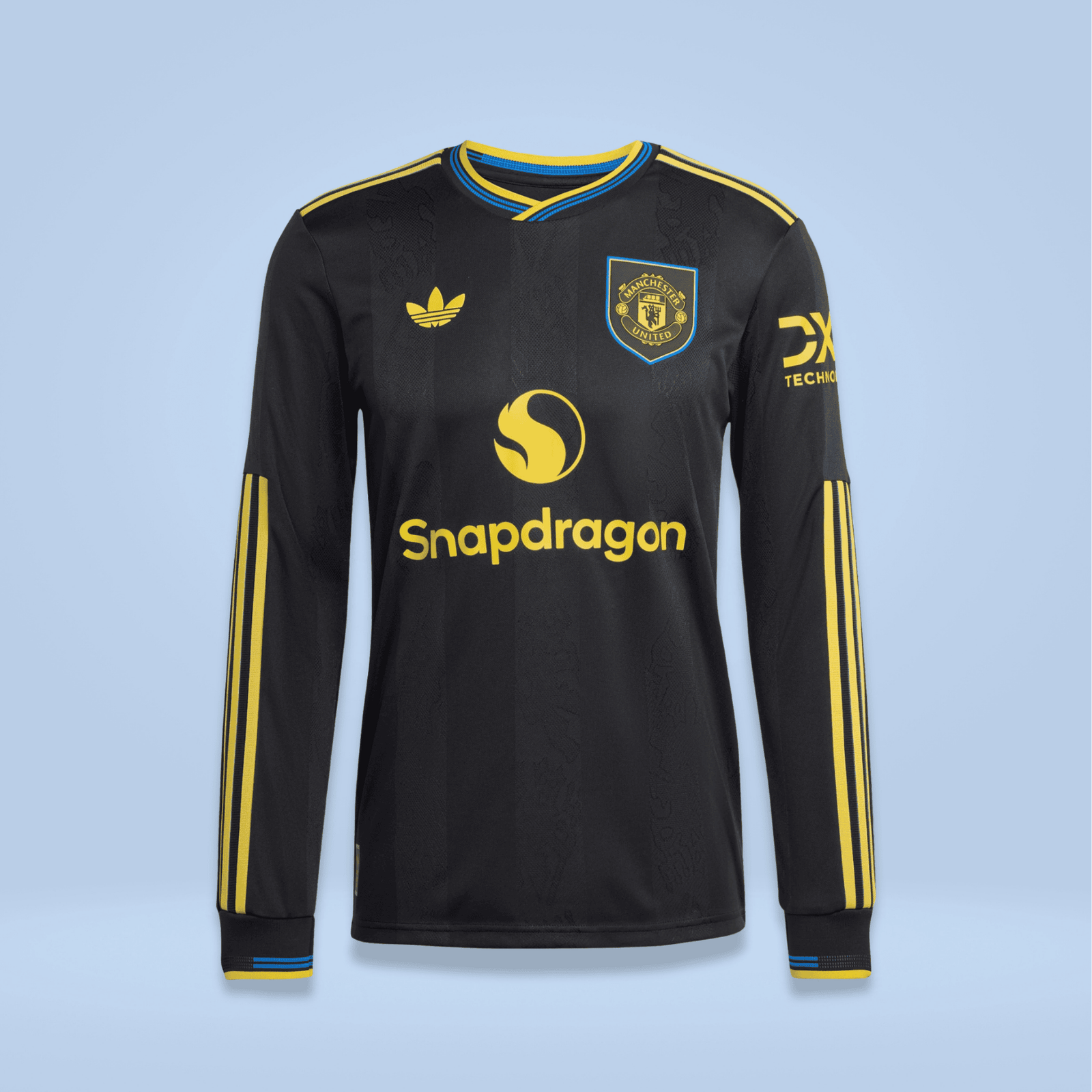 Part of a clean, classic adidas kit that will transport fans to a golden era. Finished in black, this Manchester United authentic third jersey conjures some of the club’s most iconic players and memorable away performances. A yellow Trefoil and club badge stand out on the chest while more subtle, devilish details are woven into the fabric. Lightweight and focused on performance, this eye-catching long sleeve shirt was made to create new soccer memories.